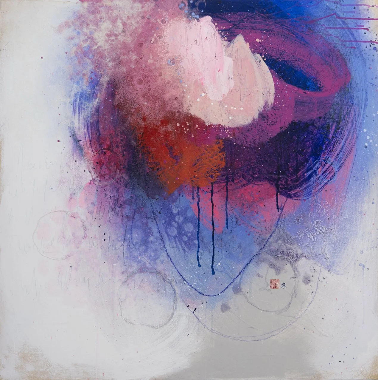With these abstract paintings, I want to give you a place to contemplate that genuine, untouched inner core that's tucked away in all of us. Take a moment, soak in the colors and textures, let your mind drift and peel back those layers — sneak a peek behind the veil.